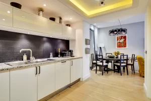 This elegant, stylish luxury London home is fully equipped with a modern kitchen, so even if Knightsbridge’s numerous restaurants don’t tempt you, there’s always somewhere to knock up a feast at home.
